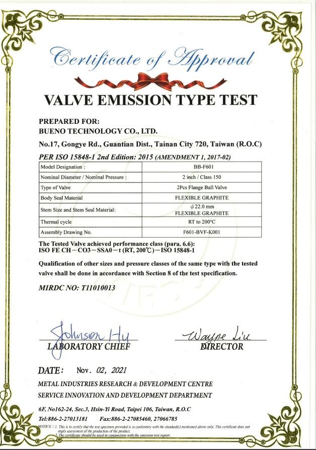 ISO 15848-1에 따른 2피스 플랜지 볼 밸브 150LB의 VOC 테스트